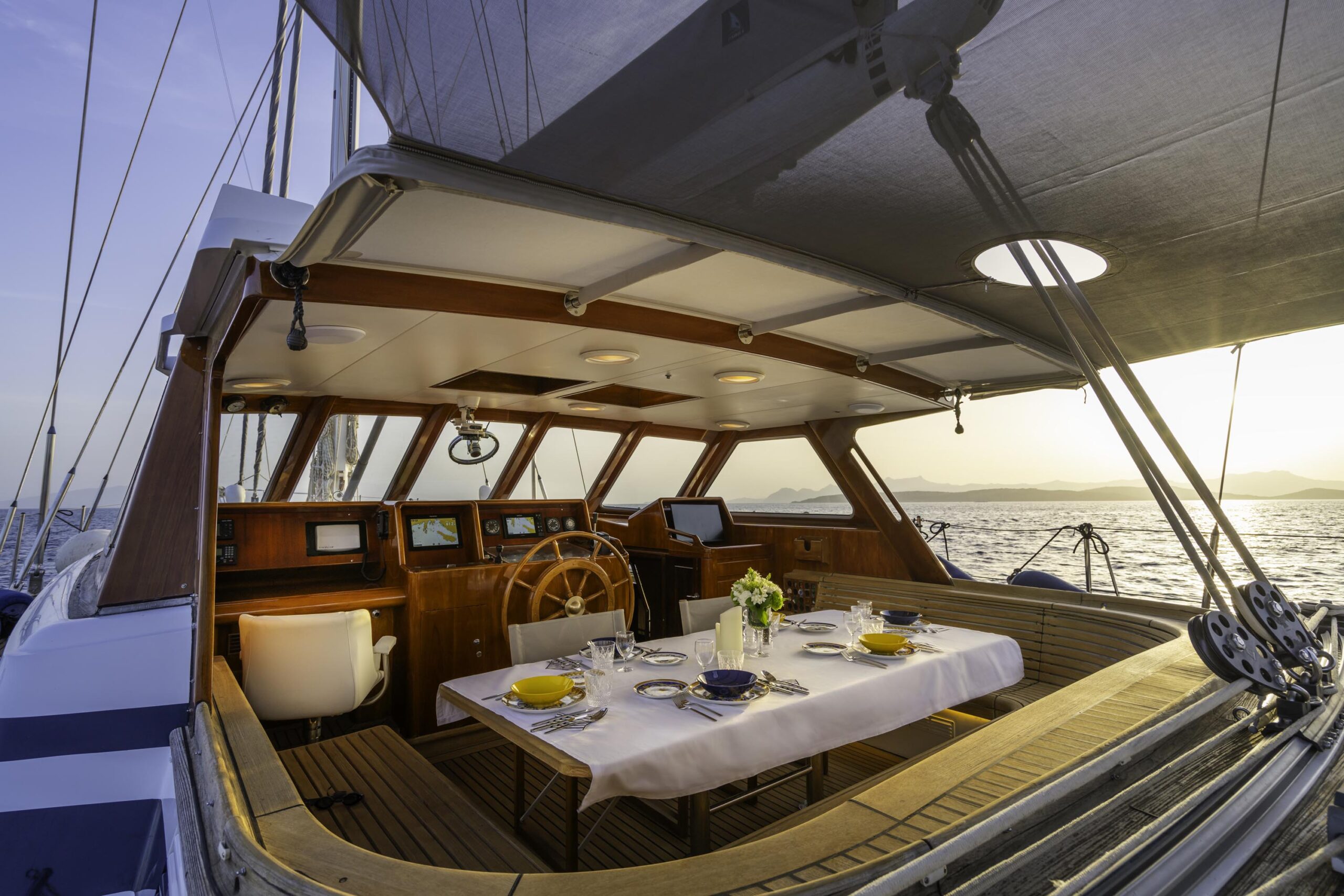 Designed for all-weather sailing, the protected pilot house ensures safety and comfort by shielding against wind, sun, and rough seas. Advanced navigation systems and panoramic mast and bow cameras provide seamless control and clear visibility, allowing you to sail with confidence in any condition.